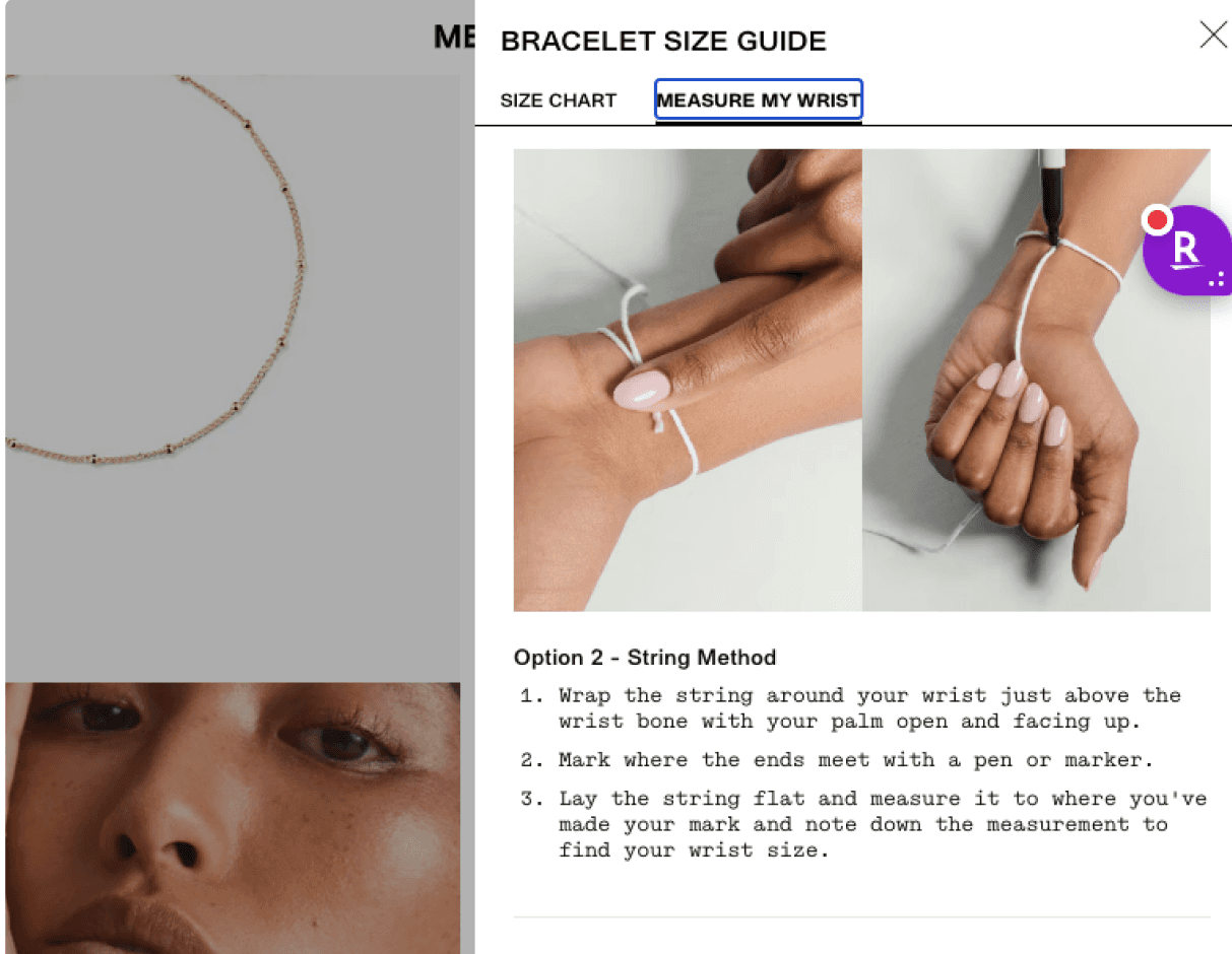 Using these guiding pillars, we conducted a competitive and comparative analysis on the following companies: Mejuri, Chula, Fenty, Universal Standard and Quince. From these companies, we learned good practices on how to achieve these pillars with step-by-step size guides, verified reviews with photos, and about the brand story page.