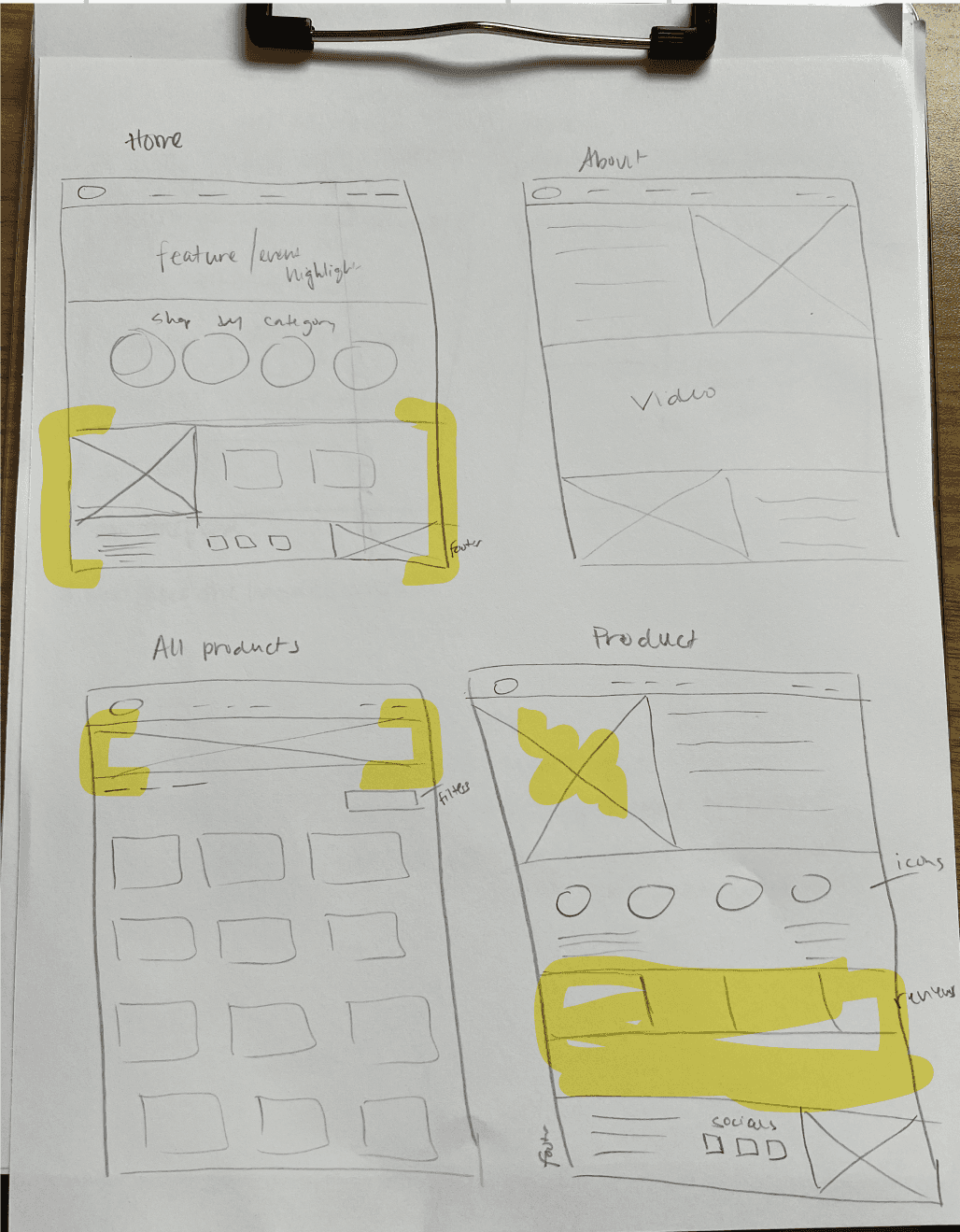 We then created wireframes which focused on: